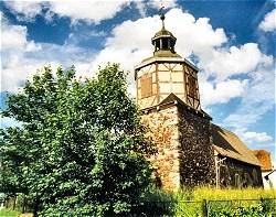 von Reinhard Glaß, Niedersachswerfen Harzungen Harzungen ist eine der ältesten Ortschaften im Landkreis Nordhausen. Bis ca. 1540 hatte das Dorf einen eigenen (katholischen) Geistlichen. Der frühere Harzunger Lehrer und Kantor Eisfeld notiert in seinen chronischen Aufzeichnungen aus den 1940iger Jahren, leider ohne Quellennachweis: "Über unser Kirchlein berichtet eine Urkunde, in der es heißt, daß Harzungen schon in den Jahren um 1050 eine eigene Pfarre und Kirche hatte." In seiner 1817 veröffentlichten "Kirchen-, Pfarr- und Schul-Chronik" hält der Leimbacher Pastor Just Ludwig Günther Leopold (1761-1822) über Gesteinsvorkommen nahe Harzungen folgendes fest: "Ohnfern (...) ist der schoenste Alabasterbruch zwischen Harzungen, Niedersachswerfen und Wiegersdorf in einem Feldholze. Er wurde 1736 und 37 entdeckt; Man hat mehrere Sorten, die unter dem Namen Harzunger-Alabaster bekannt sind und im Handel bis nach Berlin jetzt aber vorzueglich nach Leipzig gehen, wo sie hauptsaechlich von Tischlern zu Verzierungen gesucht werden. Die Sorten selbst sind: ein Fliegenstein; ein schneeweißer Alabaster; ein dergleichen theils mit starken, theils mit schwachen dunkelgrauen Spathadern, ein halbdurchsichtiger Spath-Alabaster mit hell-und dunkelrothen Flecken; ein dergleichen mit hell-und dunkelbraunrothen Wolken; noch ein dergleichen gelber, wie Bernstein durchsichtig mit Steinmark durchmischt. Alle diese werden jedoch nur Klumpenweise angetroffen; der weiße allein bricht in großen Stuecken oft von mehreren Centnern, so daß Bildsaeulen, Grabmahle, Fenster- und Kamin-Einfassungen davon verfertigt werden koennen. Am haeufigsten wird der ganz weiße, dem cararischen Marmor sehr nahe kommende zu Verzierungen an diejenigen Putzschraenke genommen die unter dem Namen Bureau und Secretaire bekannt sind. Die Kirche 1. Kurzcharakteristik Die zweischaligen Außenwände des Turmes (ca. 12Jh.) und des Kirchenschiffes bestehen hauptsächlich aus Porphyr und Kalkstein, teils auch aus Gips-und Anhydritgestein - jeweils lokale Gesteinsvorkommen.Vereinzelt finden sich im Mauerwerk auch Grauwacke, Sandstein und Ziegelsteinfragmente.