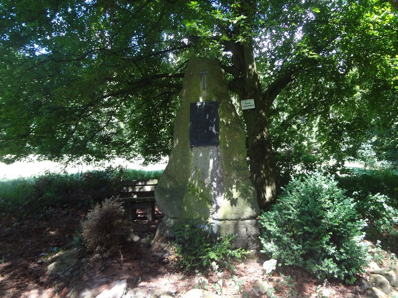 Ein Jahr später, am 30. Juli 1937, schuf die Gemeinde Scharzfeld im Auftrag der Eltern den Sportfliegern ein Denkmal an der Absturzstelle auf der Fulge. Zur Enthüllung dieses Gedenksteins waren 1937 die Angehörigen nach Scharzfeld gekommen, um das Denkmal in die Obhut der Gemeinde zu geben. Der Gedenkstein besteht aus einem Granitfindling. Eine Bronzeplatte trägt in Blockschrift die Namen und den Todestag der beiden Sportflieger. Ein fliegender Adler symbolisiert den, von den jungen Tschechen gehuldigten Flugsport, und die fünf olympischen Ringe deuten auf die große sportliche Begegnung in Deutschland im Jahre 1936 hin. Den oberen Teil schmückt ein Bronzekreuz. Unterhalb der Bronzeplatte (in Emaille gebrannt) sah man die Bildnisse der beiden Tschechen. Nach dem Zusammenbruch 1945 hat die damalige Zerstörungswut auch dieses Denkmal getroffen, die Emaillefotos wurden zerschlagen. Quelle: nach HarzKurier |
