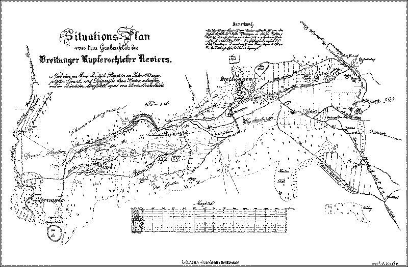 Situations-Plan von dem Grubenfeld des Breitunger Kupferschiefer Reviers, BOCK 1858