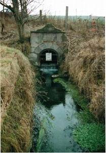 Rechtzeitig wurde auch erkannt, dass die im 18. Jahrhundert aufgefahrenen Entwässerungsstollen dem im 19. Jahrhundert immer weiter in die Tiefe fortschreitenden Bergbau nicht mehr genügten. Um die Wasserproblematik für die gesamte Mansfelder Mulde lösen zu können, wurde deshalb von 1809 bis 1879 einer der auch heute noch längsten bergbaulichen Entwässerungsstollen seiner Zeit, der Schlüsselstollen, in einer Gesamtlänge von 31 km aufgefahren. Er beginnt westlich von Eisleben und entwässert bei Friedeburg in die Schlenze bzw. Saale, wobei sein Mundloch mit + 72 m NN nur wenig über dem Hochwasserpegel der Saale liegt. Der Schlüsselstollen führt heute noch etwa 25 m³/min salziges Wasser aus der Mansfelder Mulde ab (Abb. 14).  |  | | Abb. 14 | Abb. 14 a |